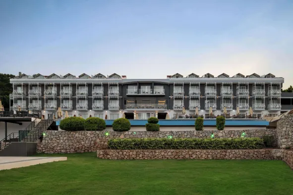 All-inclusive resort in Fethiye with private beach, swimming pool, spa services, and on-site dining options.