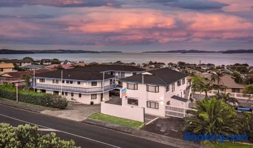 Waterfront motel with indoor private hot tubs, air-conditioned rooms, and easy access to Orewa Beach.