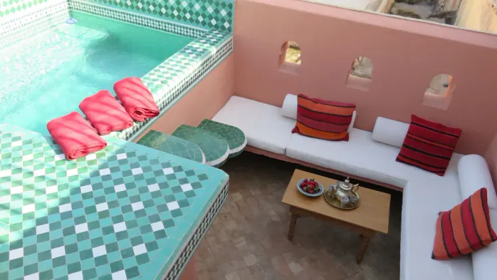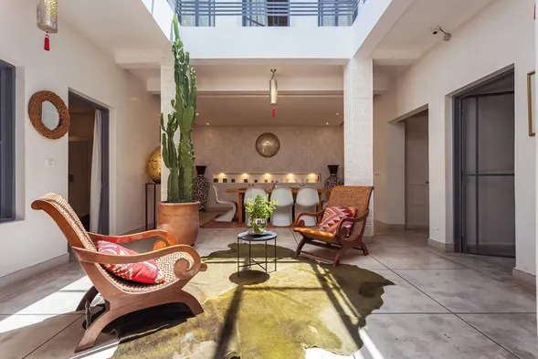 Hotels with a fireplace near Marrakech-Menara Airport typically provide a range of amenities designed for comfort and relaxation. In addition to in-room fireplaces, you may find spacious accommodations, cozy sitting areas, and personalized services tailored to enhance your stay. Many hotels also feature on-site dining options that serve traditional Moroccan cuisine, as well as outdoor terraces or gardens that allow guests to enjoy the pleasant climate. Some establishments might also offer spa services or wellness activities, enhancing the overall experience for guests seeking tranquility after a day of exploring.