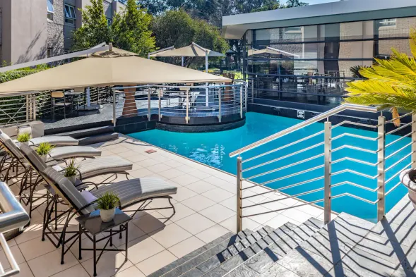 Luxury hotel near O.R. Tambo Airport with indoor pool, spa services, and exceptional dining options.