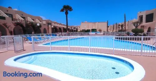 Experience beachfront relaxation with a swimming pool, restaurant, and rejuvenating sauna at this holiday park in Caleta de Fuste.