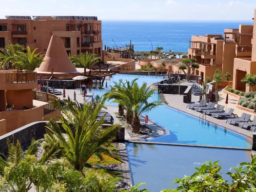 Luxury hotel with 7 outdoor swimming pools, spa services, and beachfront access in San Miguel de Abona.