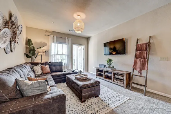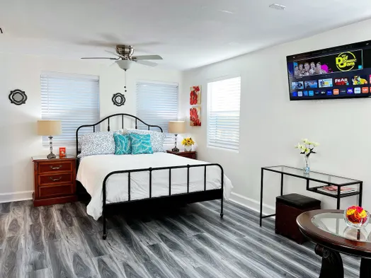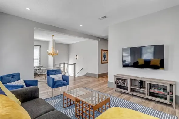 Chic apartment in Jacksonville with bold colors, laundry service, and pet-friendly policy for dogs and cats under 50 lbs.