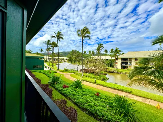 Studio apartment with mountain views, 4 swimming pools, and access to beach activities in Lihue, Kauai.