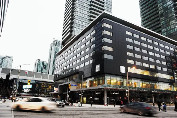 Modern hotel in downtown Toronto with well-appointed rooms, banquet facilities, and convenient access to shopping and theaters.
