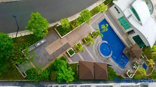 Luxury apartment with private pool, garden view, and wellness facilities in Pasay City.