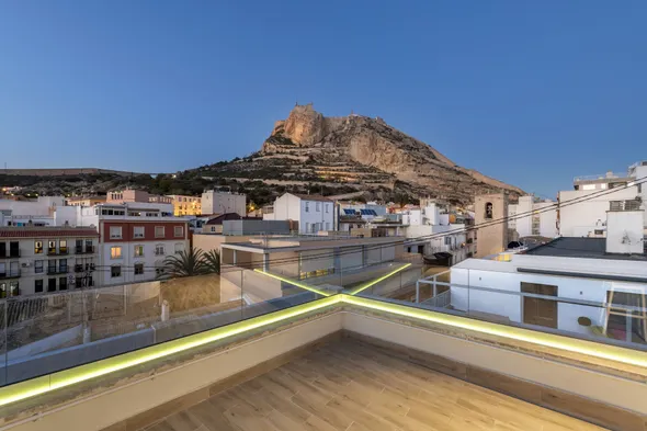 Centrally located apartment with rooftop terrace, kitchenettes, and easy access to Alicante Harbour and Postiguet Beach.