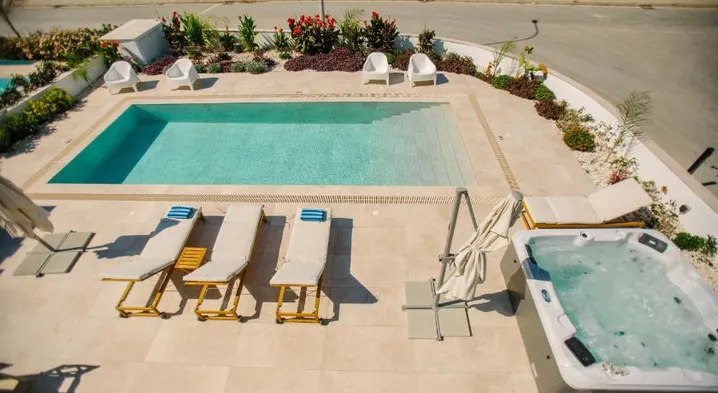 Hotels with hot tubs or jacuzzis near Larnaca International Airport usually offer a range of amenities designed for relaxation and comfort. In addition to the hot tub, you can typically find features like swimming pools, spa services, and fitness centers. Many establishments also provide complimentary breakfast, free Wi-Fi, and room service. Guest rooms often come equipped with air conditioning, televisions, and minibars, making your stay convenient and enjoyable. Additionally, some hotels may offer outdoor lounge areas or beautiful gardens for guests to unwind.