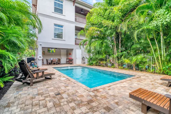 Beachside villa with outdoor pool, terrace, and garden, just a minute from Siesta Key Beach.