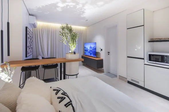 Staying in a hotel with a kitchenette during business trips offers several advantages. The ability to prepare your own meals can save time and reduce the need to dine out for every meal, allowing you to manage your schedule more effectively. This is particularly beneficial for those who might find themselves working late or early in the day. Moreover, having a kitchenette allows for better control over dietary choices, which can be crucial for maintaining energy and focus during a busy work schedule. A comfortable and private space to unwind can also contribute positively to productivity and overall well-being during your trip.