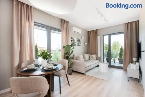Modern apartment with kitchenettes, private balconies, and access to fitness center and bicycle rentals in Katowice.