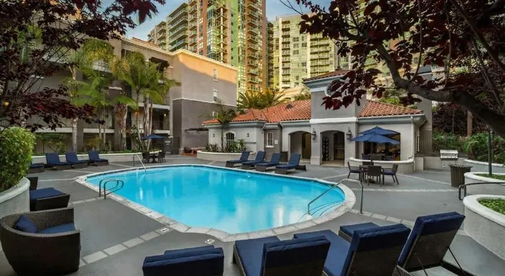 Luxury hotel with spa services, outdoor pool, and French cuisine restaurant in Century City, Los Angeles.