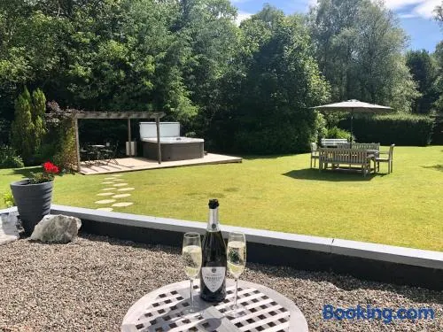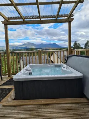 Guest house with hot tub, tennis courts, and stunning views in Aviemore, perfect for skiing and winter sports enthusiasts.