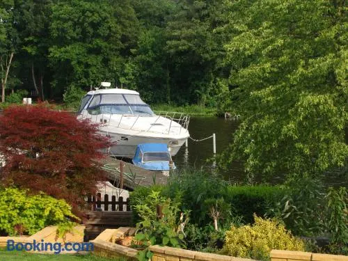 Holiday home with private beach, garden, and free parking in Treptow-Kopenick, Berlin.