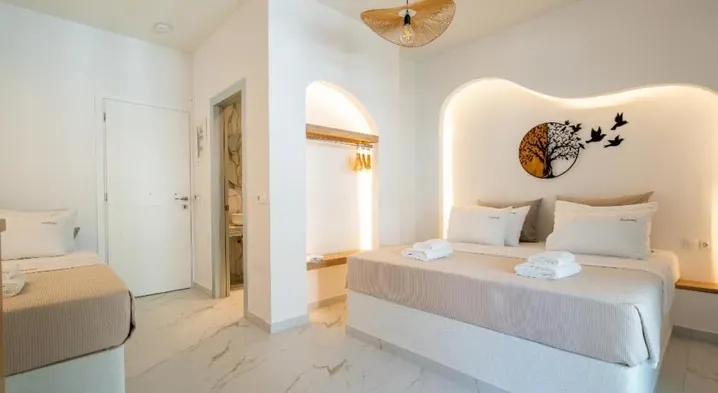 Family rooms in Neos Marmaras hotels typically come with a range of amenities to ensure a comfortable stay for families. You can expect larger spaces that may include multiple sleeping arrangements, such as a king bed and bunk beds or sofa beds for children. Many hotels also offer kitchenettes or mini-refrigerators, which can be convenient for preparing snacks or storing drinks. Additionally, amenities like air conditioning, free Wi-Fi, and flat-screen TVs are common, along with family-friendly features such as play areas or swimming pools.