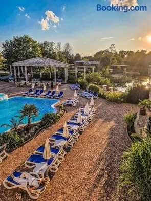 Luxury hotel on a lake with a spa, swimming pool, and two restaurants offering Polish cuisine. Enjoy stunning views and spacious rooms.