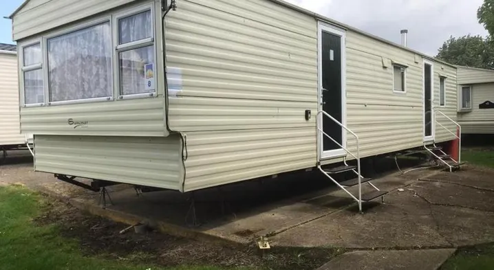5 mins walk to beach. 3 bedroom caravan. Sleeps 8