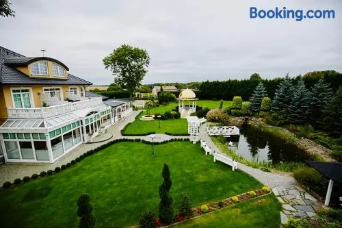 Relaxing hotel with indoor and seasonal outdoor pools, spa services, and close proximity to Kołobrzeg Beach and parks.