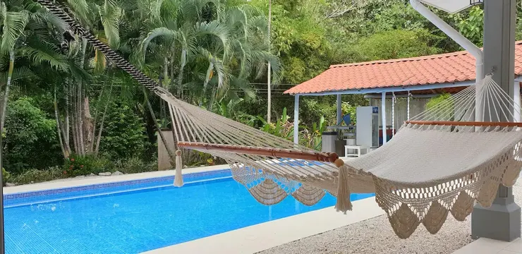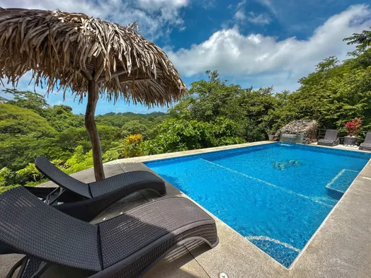 Private vacation home with a large garden, air conditioning, and convenient laundry service in Sámara, Costa Rica.