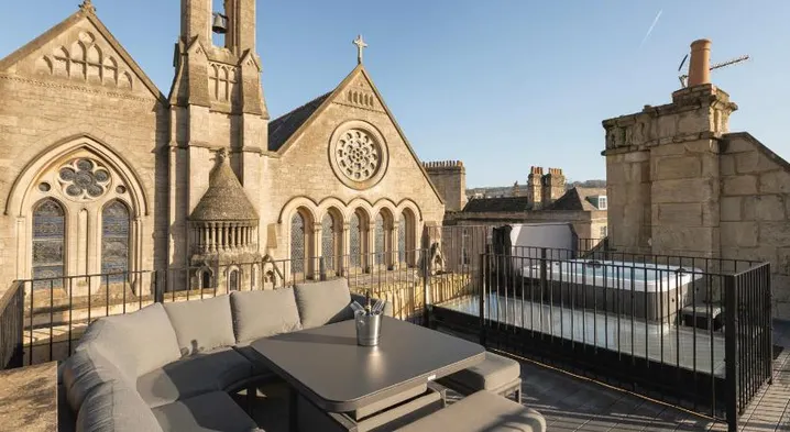 Centrally located hotel in Bath with a restaurant, hot tub, and concierge services for a luxurious stay.