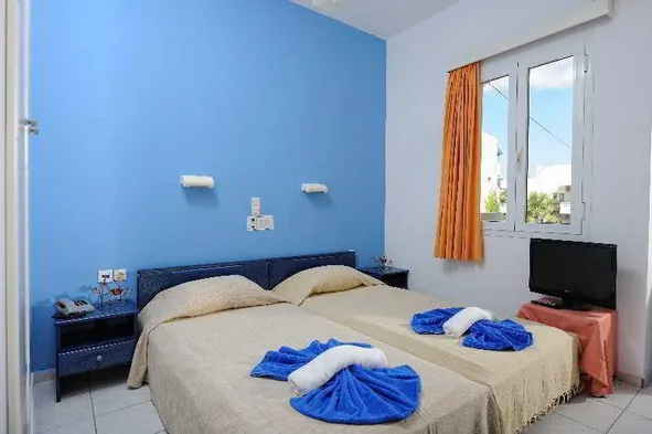 Family-friendly hotel in Stalis with outdoor pool, restaurant, and free parking, just 100 m from the beach.