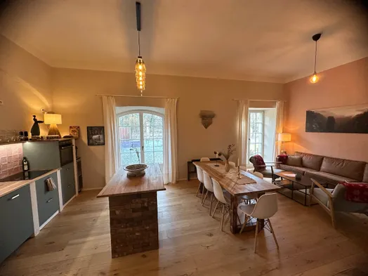 Spacious apartment with seasonal outdoor swimming pool, sauna, and terrace in historic Pirna.