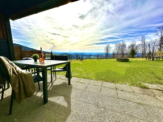 Feriendomizil mit Zirbenholz gestaltet. Sauna und großzügige Terrasse.