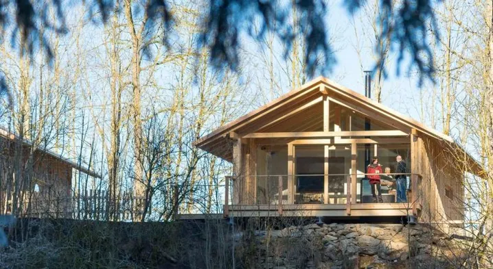 Extravagante Chaletwohnung aus Tannenholz und Naturstein. Whirlwanne und Sauna.