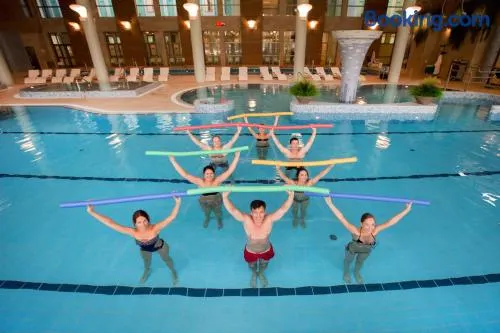 Luxury hotel with spa, two indoor pools, and tennis courts, located near Palanga Beach.