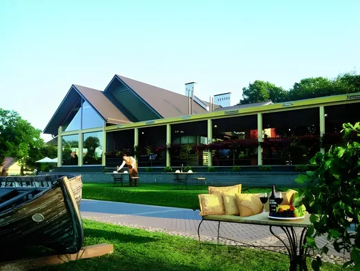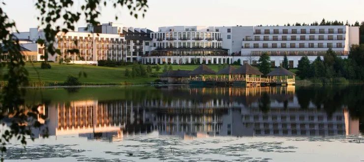 Luxury hotel with spa, two indoor pools, and tennis courts, located near Palanga Beach.