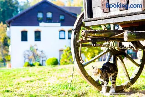 Hotel with indoor pool, tennis courts, and a restaurant, located in a regional park near Chemnitz attractions.