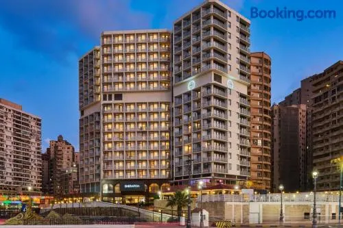 Luxury beach hotel with spa, multiple dining options, and outdoor swimming pools in the heart of Alexandria.