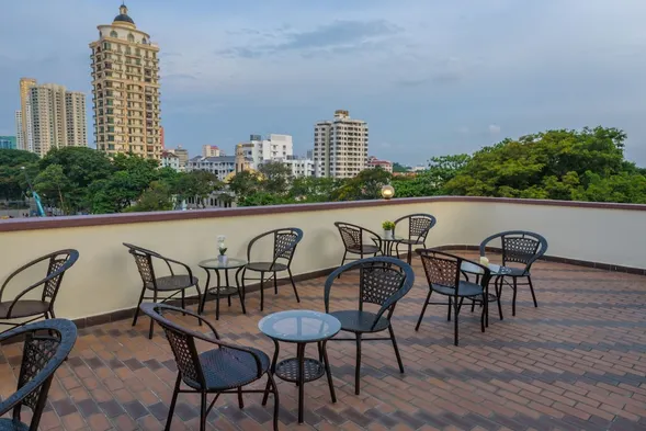 Luxury hotel with outdoor swimming pool, on-site dining, and impressive views near Gurney Drive beach in George Town.