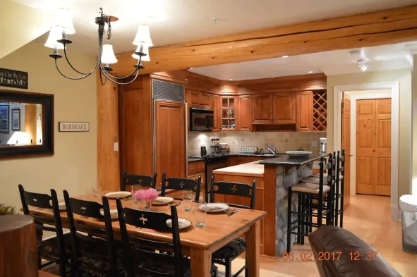 Spacious condo with stunning mountain views, private hot tub, BBQ, and access to a common area pool in Whistler's exclusive Blueberry Hill.
