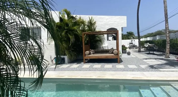 Aparthotel with outdoor pool, terrace, and concierge services, located near Eagle Beach and Palm Beach.