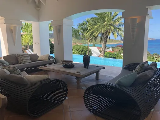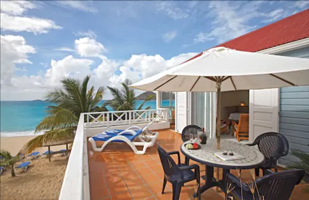Beachfront apartment with a hot tub, garden, and water sports equipment in Grand Cul-de-Sac, St. Barthelemy.