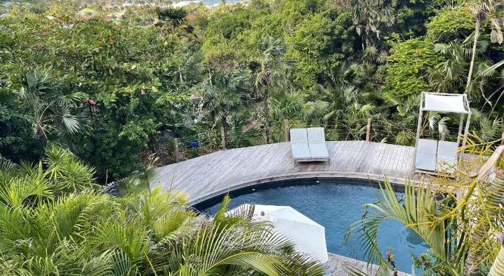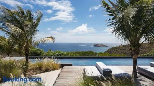 Luxury hotel with outdoor pool, full-service spa, and complimentary airport shuttle near Colombier Beach.