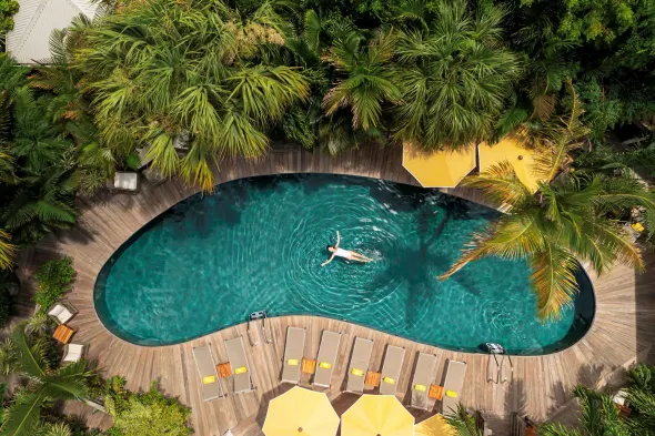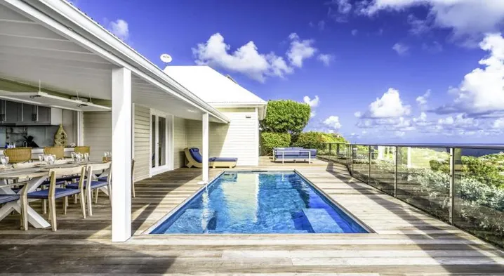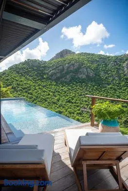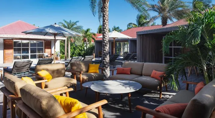 Luxury hotel with outdoor pool, full-service spa, and complimentary airport shuttle near Colombier Beach.