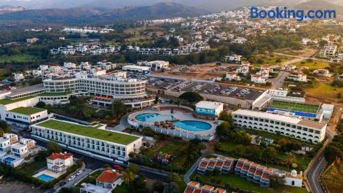 Kyrenia is rich in history and natural beauty, making it a captivating destination for travelers. Not far from the hotels, you'll find the stunning Kyrenia Castle, which dates back to the 16th century and offers breathtaking views of the harbor. Additionally, the picturesque old town, with its charming narrow streets and vibrant cafes, is perfect for leisurely strolls. For nature enthusiasts, the nearby Bellapais Abbey, a beautiful 13th-century ruin surrounded by lush hills, is a serene spot worth visiting.