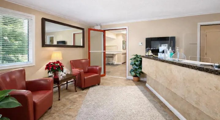 Motel with indoor pool, garden views, and banquet facilities, located steps from Art Walk in Hope, British Columbia.