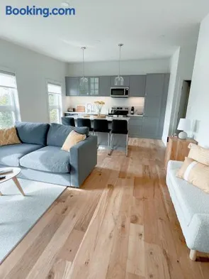 Newly renovated vacation home with vaulted ceilings, spacious living areas, and outdoor fire pit in Elora's city center.