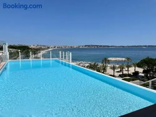 Beachfront apartment with sea views, terrace, and free private parking in Golfe-Juan, just 500 metres from Plage du Midi.