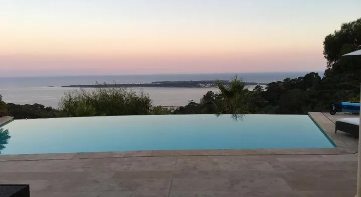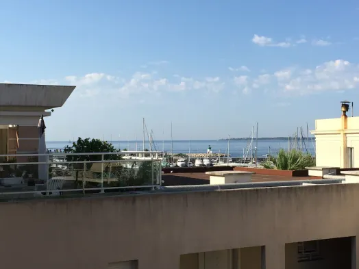 3 rooms on top floor, panoramic sea view, swimming pool, air conditioning, garage