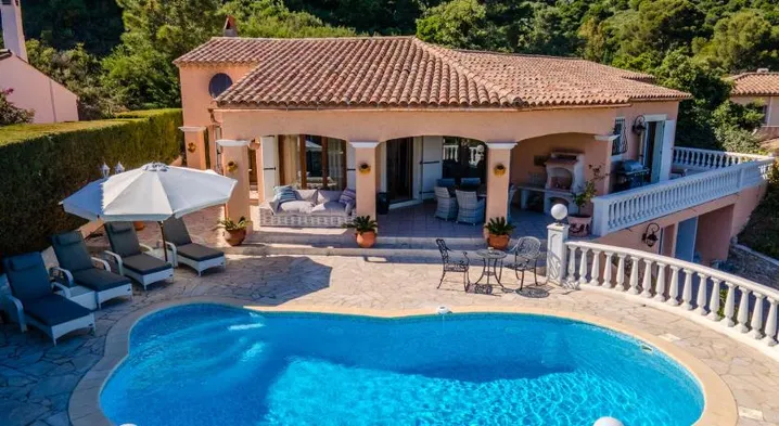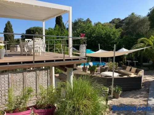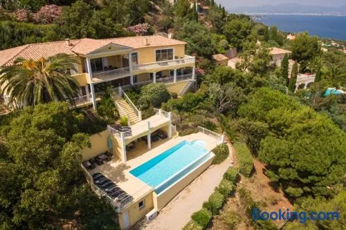 Enjoy a seasonal outdoor pool and private beach access at this stylish villa in Sainte-Maxime, just 0.6 km from Nartelle Beach.