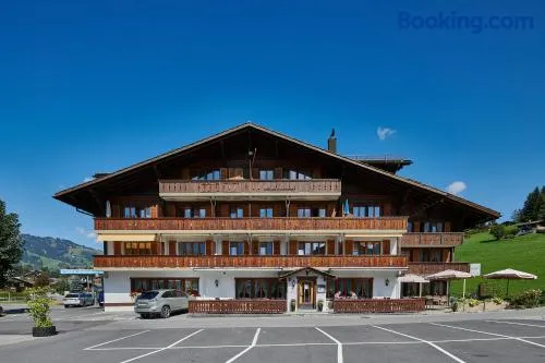 Family-friendly hotel with ski-in/ski-out access, hot tub, sauna, and complimentary breakfast in Gstaad.