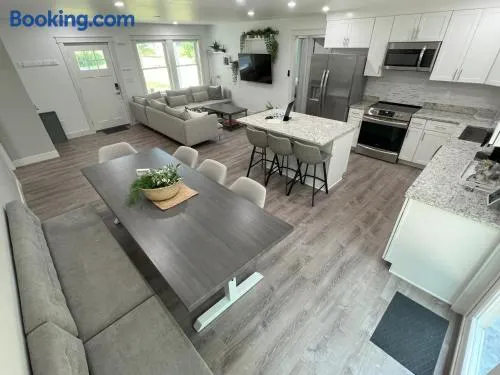 Cozy 2-bedroom vacation home with gigabit Wi-Fi, full kitchen, and spacious backyard in New London, Connecticut.