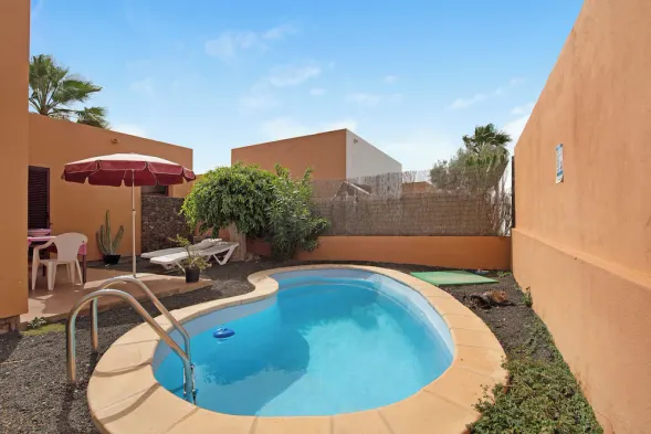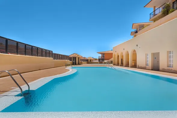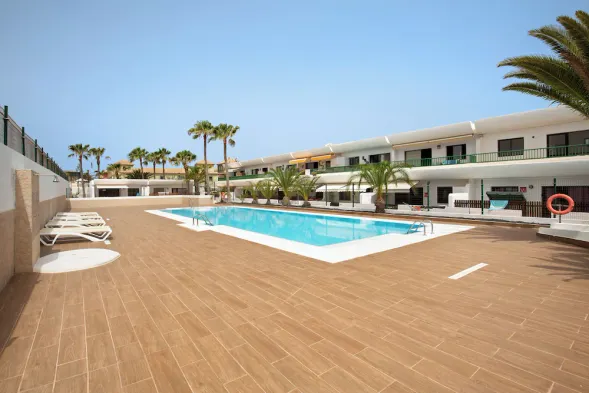 Cozy apartment with shared pool, free street parking, and stunning views of the Dunes of Corralejo, just 550 m from the beach.