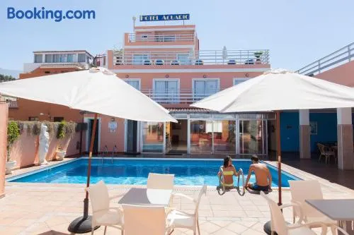 Enjoy an outdoor pool and rooftop terrace just a short walk from Garden Beach in this comfortable aparthotel.