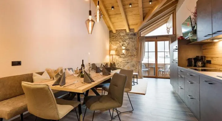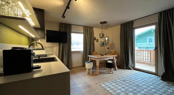 Apartment with garden views, balcony, and fully equipped kitchen, perfect for skiing and hiking enthusiasts.