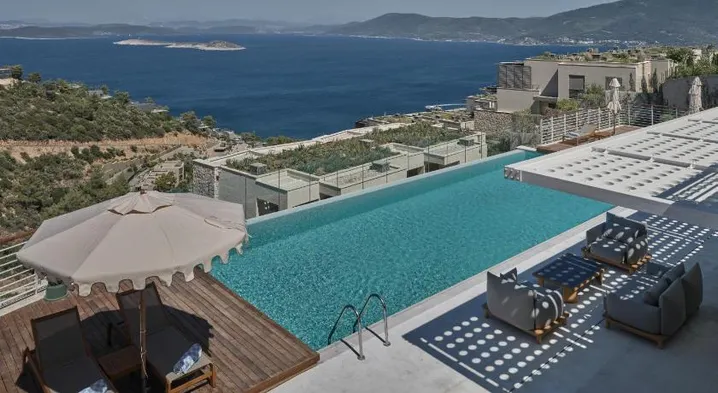 Experience luxury at this 5-star hotel with a swimming pool, private beach, spa, and on-site dining in Bodrum.
